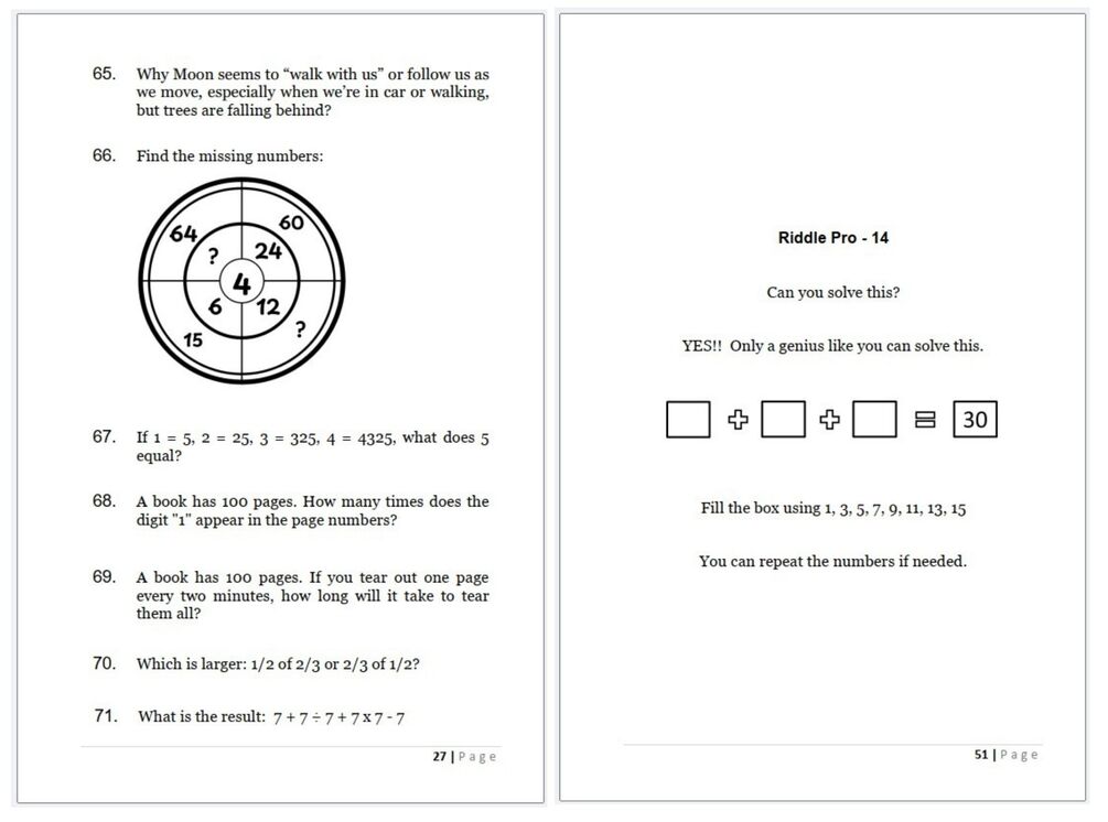For you and your kids, this book is packed with 250 thought-provoking, mind-bending, and exciting riddles, teasers & quizzes that will: